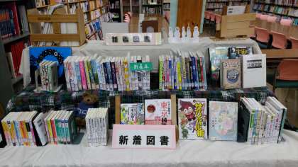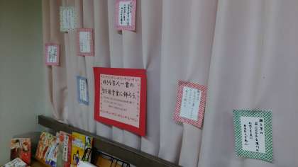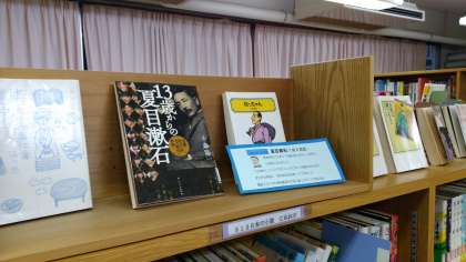 新年になり、図書室にも百人一首関連の本が並んでいます。夏目漱石も睨みを聞かせています。