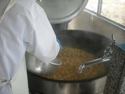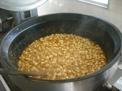 今日のメニューのひとつマーボー丼もこうして教室に運ばれていきます。食事、大切にしましょう。