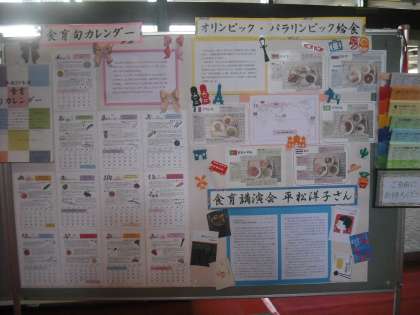 区民会館で開かれた学校給食展。食材から歴史に至るまで、給食ア・ラ・カ・ル・トです。