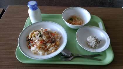 あんかけチャーハン、珍珠丸子、中華サラダ、牛乳