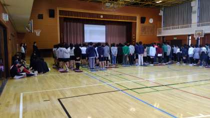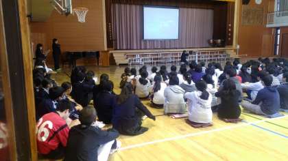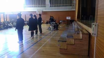 烏山小学校に訪問しての学校紹介です。教室、部活動、委員会、生徒会と続く紹介でしたが、上中を伝えようという気持ちがにじみ出ていました。