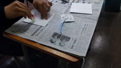 牛乳パックがみるみるうちに、きれいな折り紙に早変わりです。