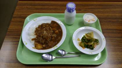 給食もスタート。カレーライスが全校生徒を出迎えてくれました。