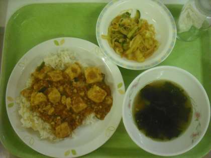 マーボー丼、バンサンスー、わかめスープ、牛乳