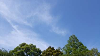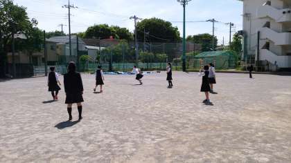 快晴の青空が、元気よく遊ぶ上中生を見守っています。