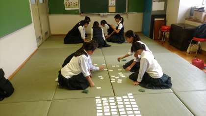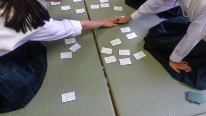 2組に分かれての百人一首。さすがに部活動。次々に札が減っていきます。