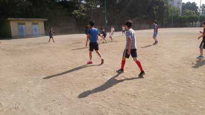 大会の時とは異なる和やかな雰囲気で朝練習が行われています。次戦に向けて鋭気を養っています。