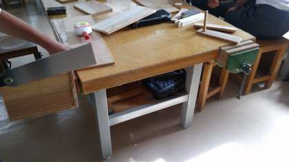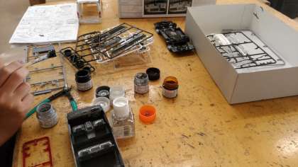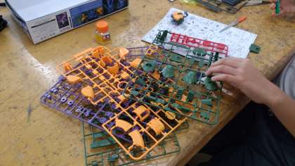 机上に並ぶプラモデル。木工に熱中する部員。ものづくりの素晴らしさを堪能できる技術室でした。