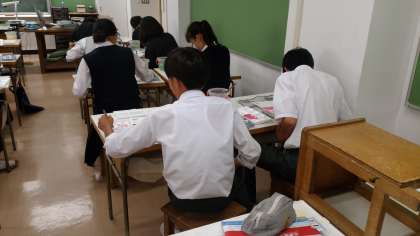 2年生が作品を仕上げています。色彩感豊かに、作品が完成しています。