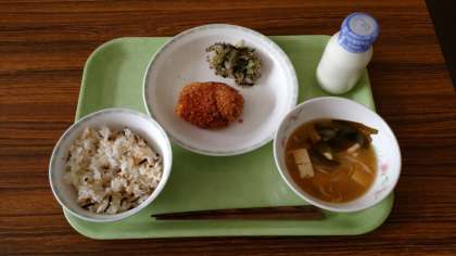 今日の給食 公開日 2018/07/04 更新日 2018/07/04 給食 献立名 こんぶご飯、コロッケ、野菜のゆかりかけ、味噌汁、牛乳 主な食材料産地 たまねぎ(兵庫)にんじん(千葉)きゃべつ(群馬)きゅうり(秋田)長ねぎ(茨城)じゃがいも(北島農園さん)わかめ(徳島)手亡豆、塩昆布(北海道) 今日は3年生が歌舞伎鑑賞教室で不在でしたので、少し寂しい校舎内でした。 いいね(0)
