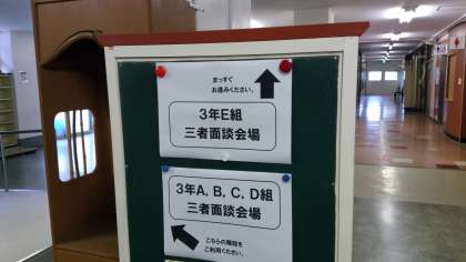 3年生の3者面談が行われています。改修工事中につき、場所や騒音でご迷惑をおかけします。ご来校された皆様にとって、有意義な時間になることを、願っています。