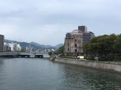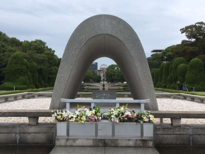 広島・京都への修学旅行の幕開けです。平和祈念公園に到着して、平和の尊さを肌で感じています。
