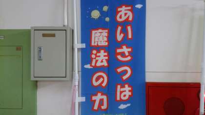 今日も続くあいさつ運動。小学生とも正門前であいさつを交わします。いってらっしゃい。