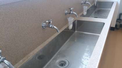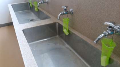 各階の手洗い場に新しい石鹸を入れる袋が取り付けられました。小さな心遣いが伝わってくるようです。