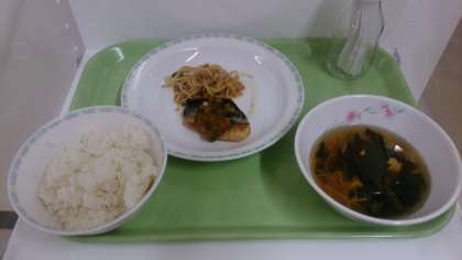 ご飯、鯖のみぞれがけ、ごま酢あえ、ほうれん草のすまし汁、牛乳