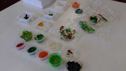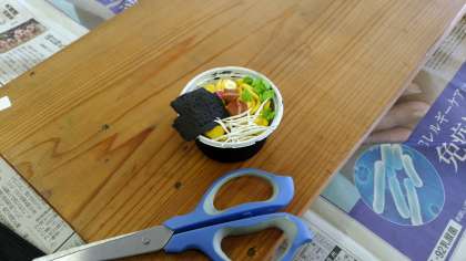 ミニチュアメニューの制作に取り組むI組の美術の授業。独創的なラーメンが続々と誕生します。