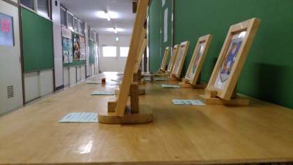 I組の技術の作品が完成しました。こつこつと授業を積み重ねた成果です。目を移すと、俳句が並びます。
