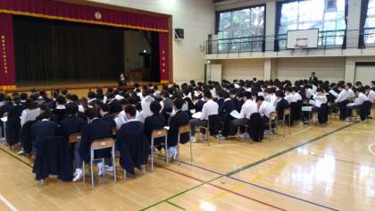 第2回進路説明会が体育館で行われました。今回は生徒と保護者の方合同ということもあり、体育館満員御礼での実施でした。多くの保護者の方々にご参加いただき、ありがとうございます。