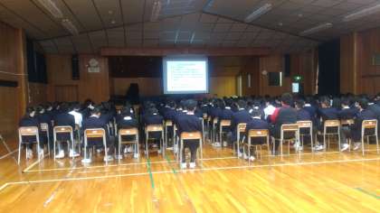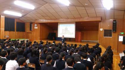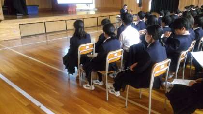 校外学習を2月に予定している2年生。事前学習の一環として、平和資料館より講師の先生をお招きしての平和学習です。