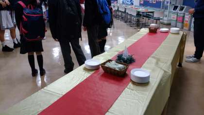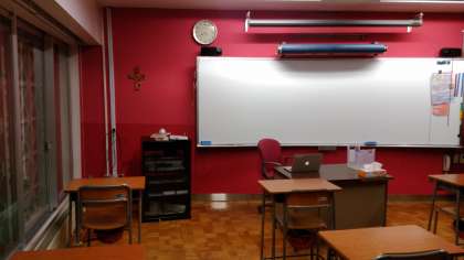 バスケットボールの親善試合と校舎案内です。恵まれた施設とカラフルな色合いに生徒会のメンバーもおおいに刺激を受けました。