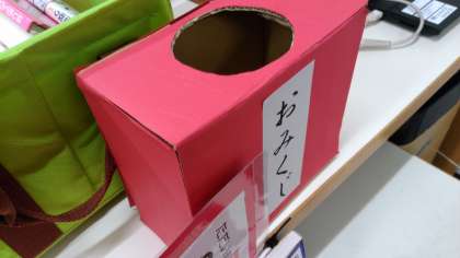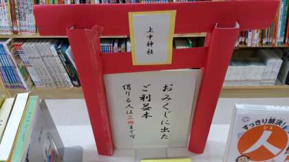 「本を借りた人にはおみくじのプレゼント」今年初めての企画に、図書館は活気に溢れています。