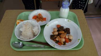 しょうが(高知)じゃがいも、たまねぎ(北海道)にんじん(千葉)ピーマン(宮崎)大根(神奈川)きゅうり(宮崎)いよかん(愛媛)くじら(北西太平洋)大麦(福井等)干ししいたけ(宮崎)たけのこ缶(熊本)