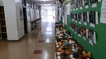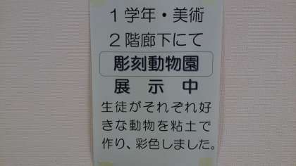 「彫刻動物園」と題した美術作品展が、2階廊下で始まりました。作品に生命が吹き込まれているようです。