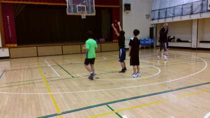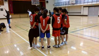 体育館でのバスケットボール部。大会を控えての練習に集中力が高まります。