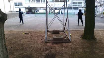 校庭が使えないので、練習はお休み?いやいや中庭で工夫して練習していました。