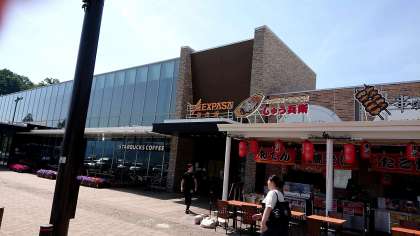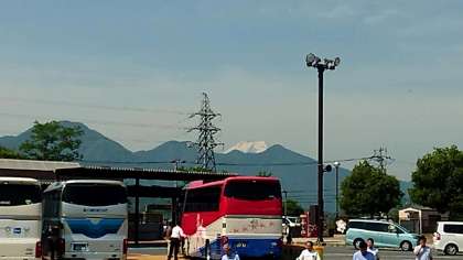 談合坂SAでトイレ休憩です。富士山の頭の部分が見えてバスの中で気持ちが高まってきていますね。