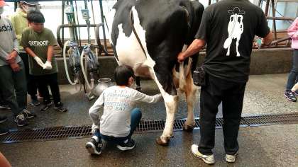 最初はびっくりしながらですがしっかり体験ができました。乳牛は以外と温かいという感想が多いですね。