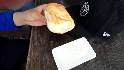 牛乳と生クリームを一生懸命振ってバターを作りました。美味しくいただけましたね