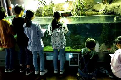 生徒は、好きなや珍しい魚のスケッチを楽しそうに行っています。