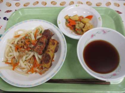 6月25日給食献立 食材・産地 公開日 2019/06/25 更新日 2019/06/25 給食 <献立> ・五目冷やしうどん ・ちくわの二色揚げ ・みそドレッシングサラダ ・牛乳 <主な食材・産地> ・焼き豚(茨城・群馬・千葉) ・にんじん(千葉) ・もやし(栃木) ・きゅうり(埼玉) ・じゃがいも(千葉) ・キャベツ(茨城) いいね(0)
