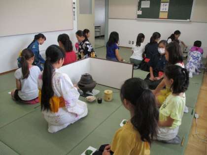 24日、上祖師谷中学校ではサマースクールとして茶道部の活動として茶道体験をおこないました。茶道の先生の指導のもとに、座り方や茶器の持ち方などの体験をして、日本の文化に触れることができました。