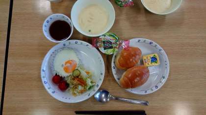 3日目は洋風の朝食で、パンとなります。今日もしっかり食べて頑張ろう。