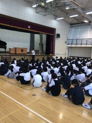 9月2日 晴天の始業式となりました。校長先生のお話からチャレンジをすることの大切さ、また防災に関して日頃から準備をすることについてのお話がありました。