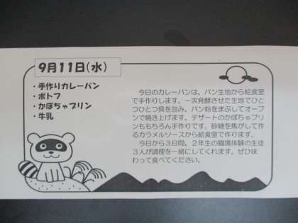 9月11日給食献立 食材・産地