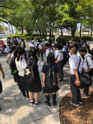 修学旅行広島 公開日 2019/09/11 更新日 2019/09/11 おしらせ 広島、平和記念公園です。原爆ドーム前でガイドさんに話をいただいています。 皆さん真剣な眼差しで聞いています。 いいね(0)