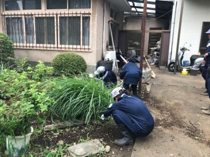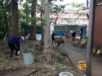 職場体験2日目。すすきを刈ったり、台風の影響で、大量に落ちてしまった銀杏を拾い集めたりしています。