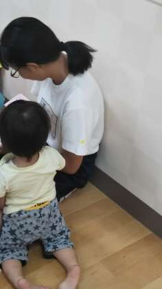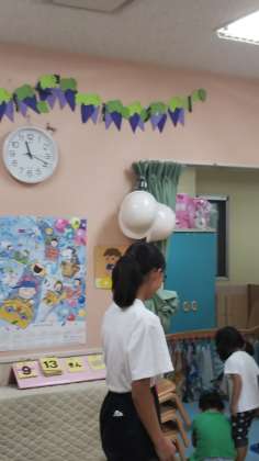 保育園での体験です。園児たちのお世話をしたり本を読んであげたりと大活躍です。