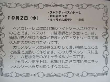 10月2日給食献立 食材・産地