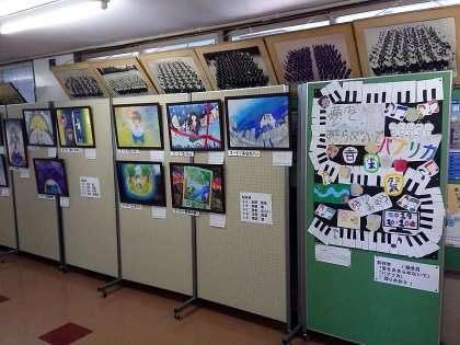 学校公開期間には修学旅行の写真や音楽祭の自由曲イメージ画も展示しております。