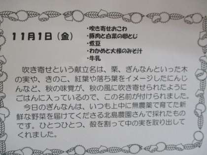11月1日給食献立 食材・産地
