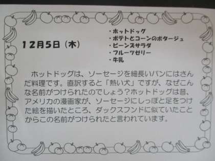 12月5日給食献立 食材・産地