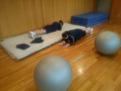 ステージでも体力向上部女子が体幹トレーニングに励んでいます!