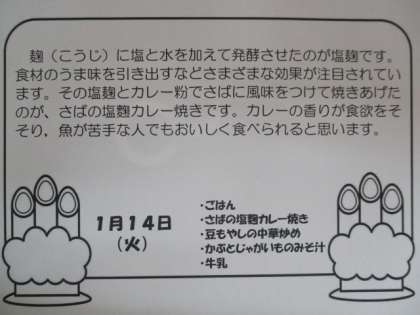 1月14日給食献立 食材・産地