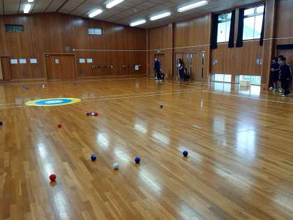 白のジャックボールに近づけるのも結構大変ですね。楽しそうにやって取り組んでいました。通常学級の授業でも積極的に取り組んでいきます。