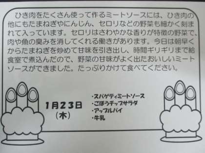1月23日給食献立 食材・産地