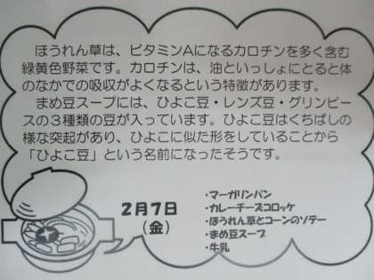 2月7日給食献立 食材・産地